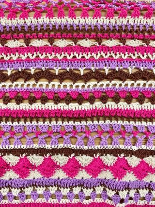 このブランケットは一段ずつ違う編み方になっていて色も変えていくので、