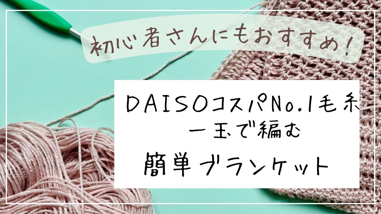 ダイソーの毛糸を使って、暖かいブランケットを編む方法を紹介しています。ダイソーの毛糸でなくても、グラデーションの毛糸や途中で色変えしながら編んでも可愛いと思います。初心者でも挑戦しやすい内容です。