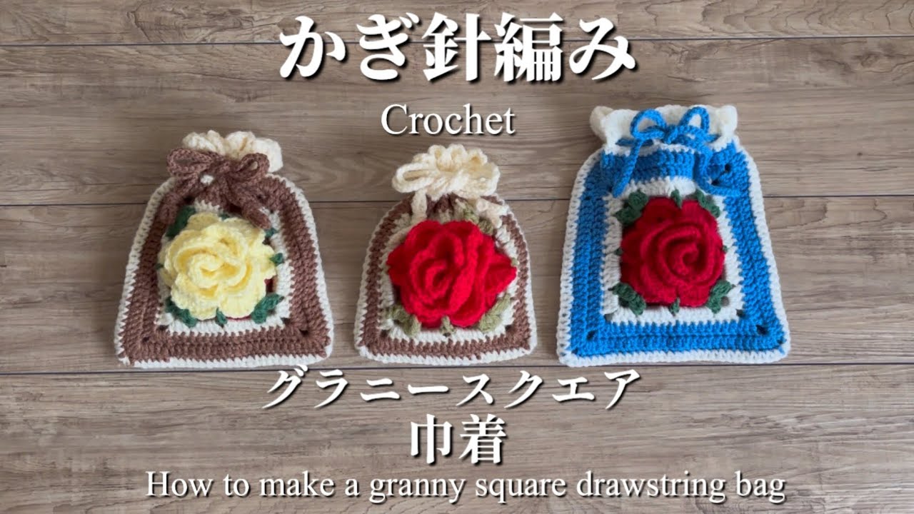 • 初心者でも簡単に作れるグラニースクエアの巾着袋